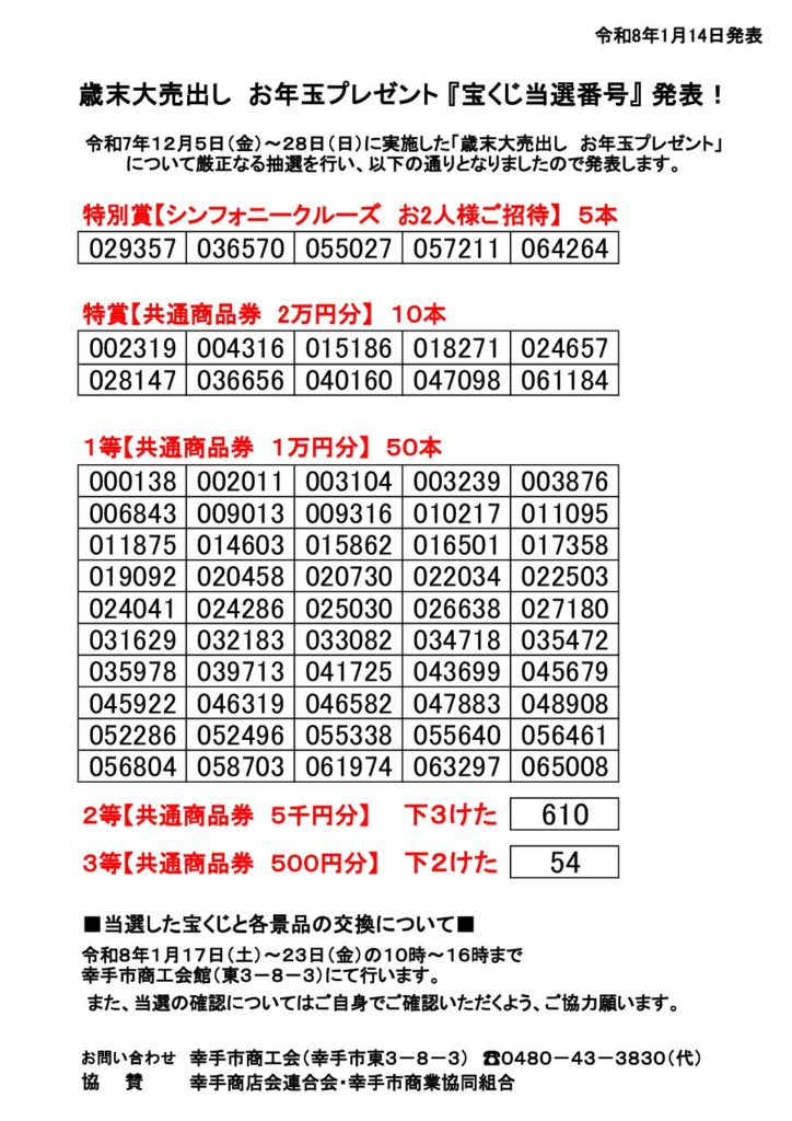 歳末大売出し当選発表!!